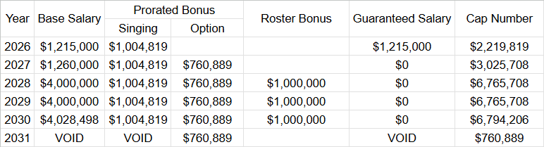 2028 compensation: $2 million fully guaranteed fifth day of 2027, rest fully guaranteed fifth day of 2028